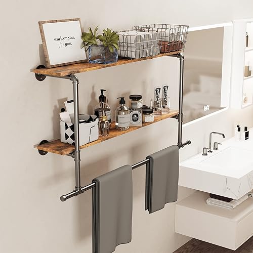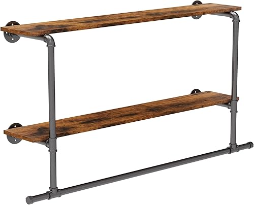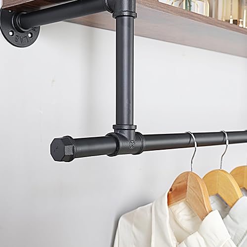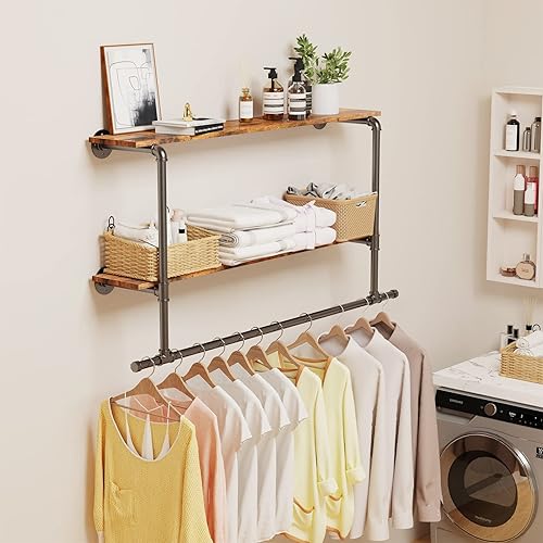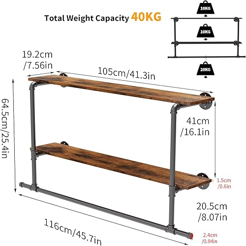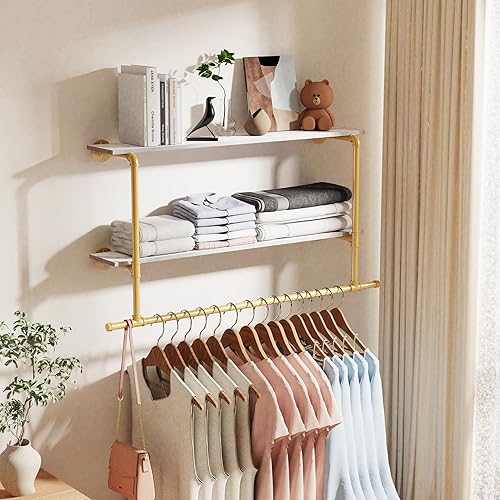unho Penderie Vêtement avec Étagères: Portant Vêtement Mural Tringle à Vêtement Suspendue Porte Manteau Mural Design en Pierre Frittée - 116x19.2x67.5cm Doré
