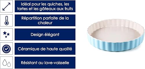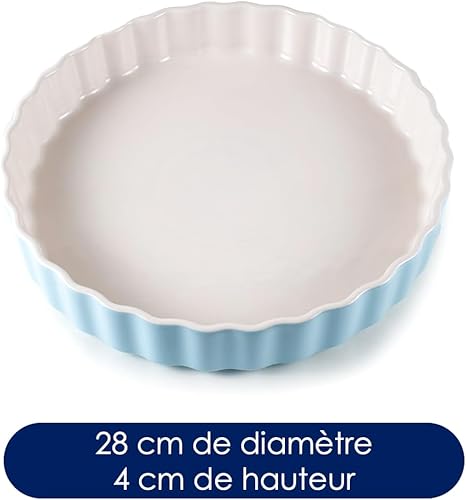 Moule à quiche Hanseküche en céramique 28 cm - Moule à tarte rond avec revêtement anti-adhésif et haut bord, moule à tarte aux fruits, résistant aux rayures et aux coupures (blanc)