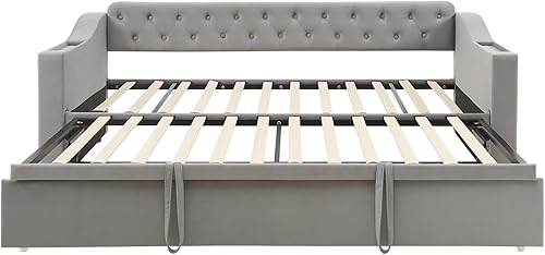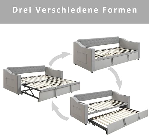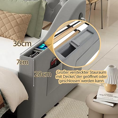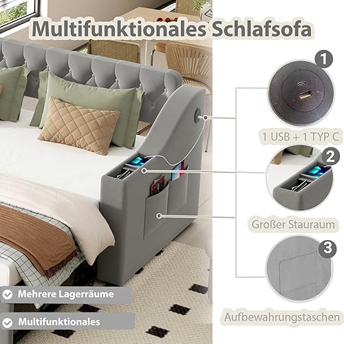 PUGSDRLY Canapé Lit Convertible 90/180x190cm avec Port USB et Espace de Rangement,Design Multifonctionnel canapé lit 2 Places Convertible,sommier à Lattes,Tissu Velours,sans Matelas (Beige)