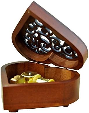WESTONETEK Boîte à Musique Vintage en Forme de cœur avec mécanisme sculpté en Bois pour Noël, Anniversaire, Saint-Valentin, mélodie pour Elise