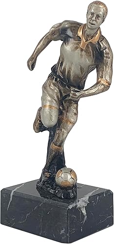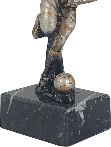 Art-Trophies AT002503 | Trophée figurine footballeur conduisant le ballon. Figurine en résine décorée en argent et or. Montée sur base en marbre.