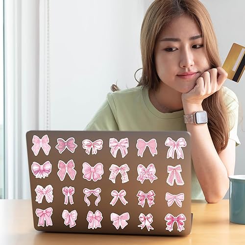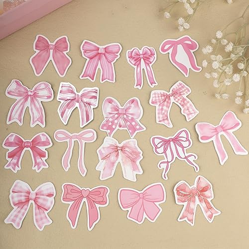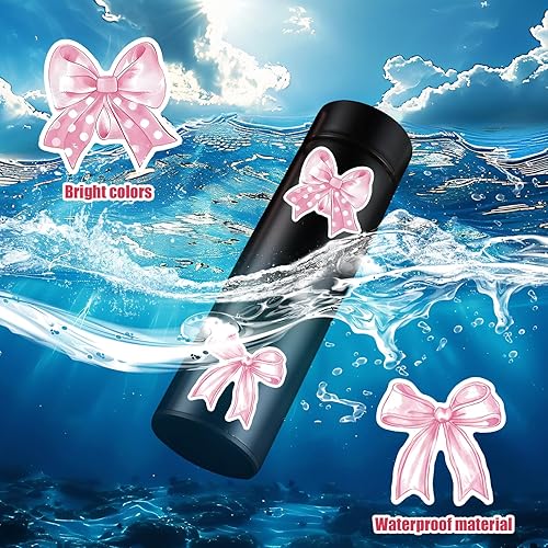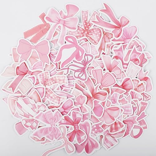 100pcs Autocollant Coquette Noeud, Imperméable Autocollants Noeud Rose Mignon Autocollant Noeud Papillon pour Bouteille d'Eau Ordinateur Portable Téléphone Journal Cadeaux pour Filles