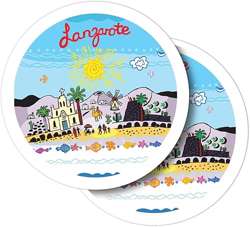 Lot de 2 autocollants ronds en vinyle de 10 cm – Lanzarote îles Canaries pour ordinateur portable, tablette, bagage, scrapbooking, réfrigérateur #58850