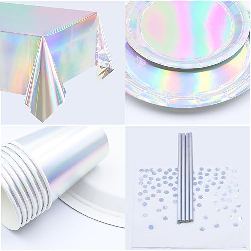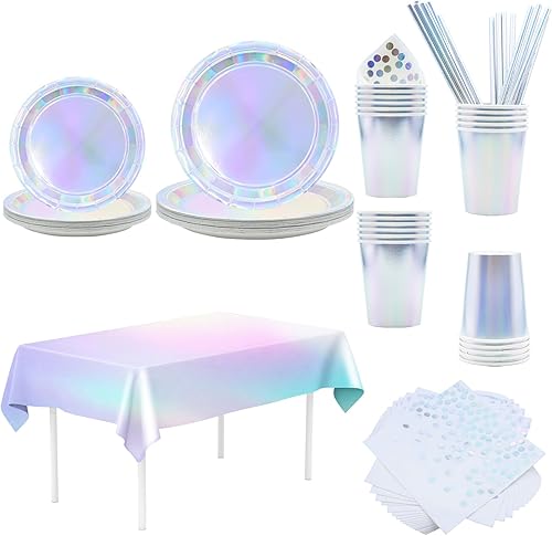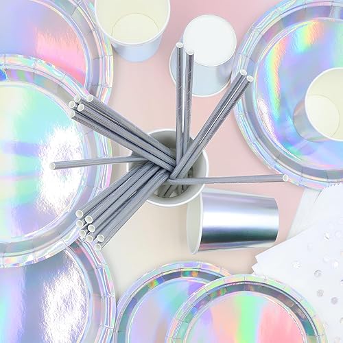 Party Vaisselle, Vexillic 121 Pièces Vaisselles Anniversaire avec Assiette Dîner Papier Paille Assiettes Tasses Serviettes Nappe de Table Décorations Anniversaire pour 24 Invités