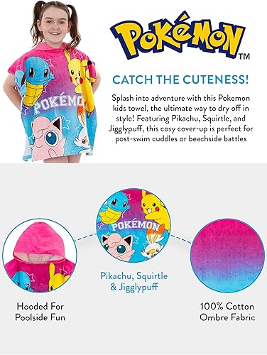 Pokémon Serviette Poncho Enfants Bleu Taille Unique