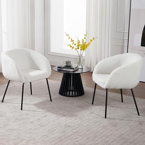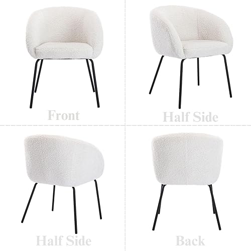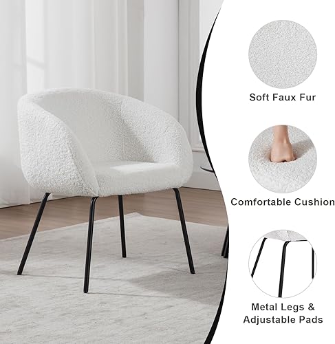 Wahson Fauteuil de Coiffeuse en Fausse Fourrure, Fauteuil de Salon avec Pied Métal Fauteuil en Bouclette Fauteuil Chambre pour Salon (Blanc-Fausse Fourrure)