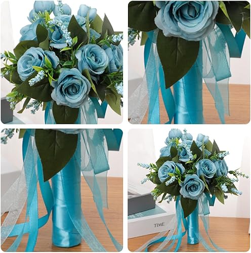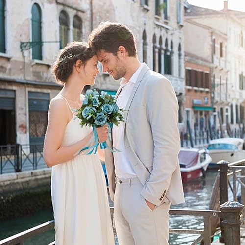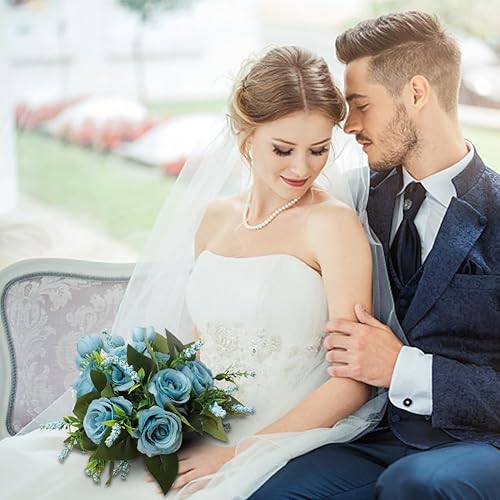 Cosiesnest Bouquet de Mariage Roses Fleurs Artificielles Roses en Soie Bouquet Fausse Fleur Artificielles Roses pour Maison Mariage Parti Fête Décoration (Blanc)