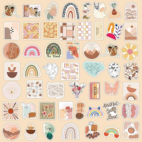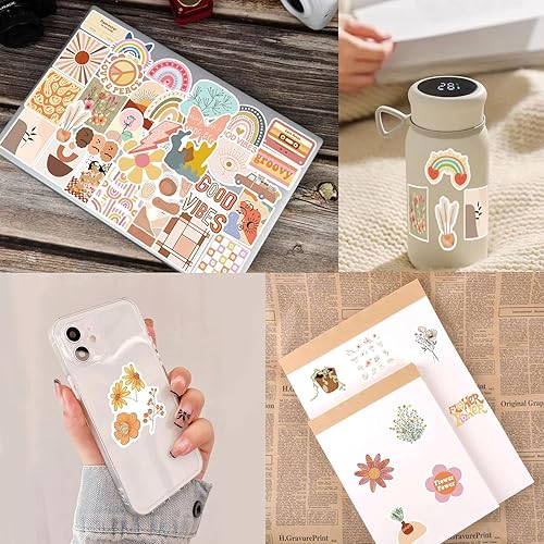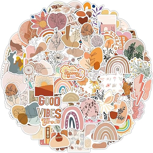 Stickers Boho 100 Pcs, Aesthetic Autocollants Bohème pour Ordinateur Portable, Téléphone, Skateboard, Valise, Guitare, Tampon, Mignons Autocollants en Vinyle Esthétiques étanches Scrapbook