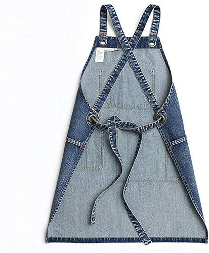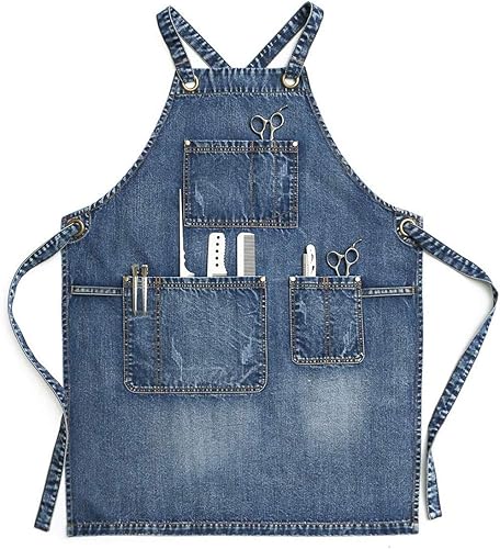 CPTDCL Tablier unisexe en jean bleu pour coiffeur, artisans, barista, barbecue, avec poches pratiques pour homme et femme