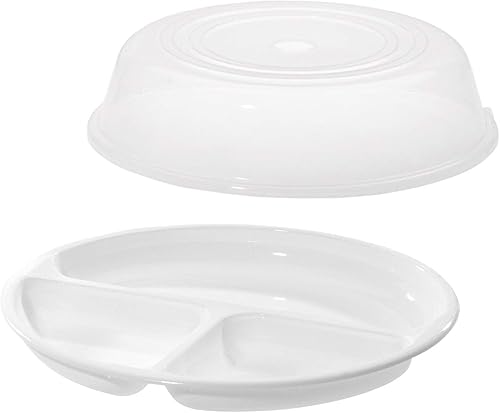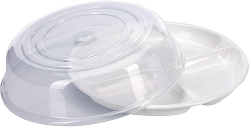 Westmark Set Micro-ondes, 2 pièces, Assiette à Compartiments et Couvercle, ø 25 cm chacun, plastique, Blanc/transparent, 224022E6
