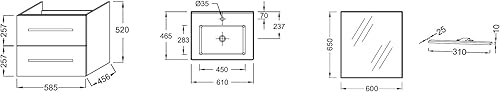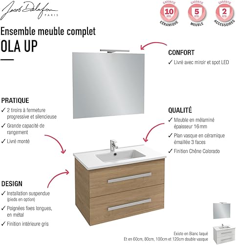 Jacob Delafon Meuble Vasque 60 cm Ola Up chêne avec Miroir et Spot