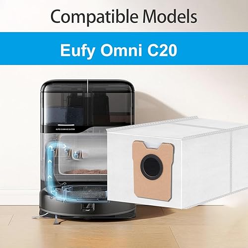 10 Pièces Sacs à Poussière de Rechange Compatibles avec Eufy Omni C20/ C10 Aspirateur Accessoires, 3L Grande Capacité