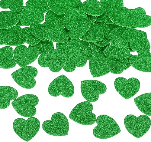 sourcing map Lot de 180 autocollants en mousse à paillettes - 2,5 cm - En forme de cœur - Pour loisirs créatifs, bricolage et décoration - Vert