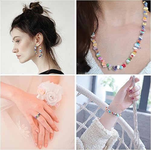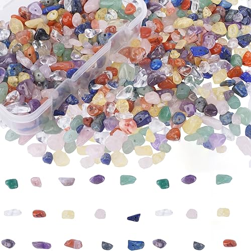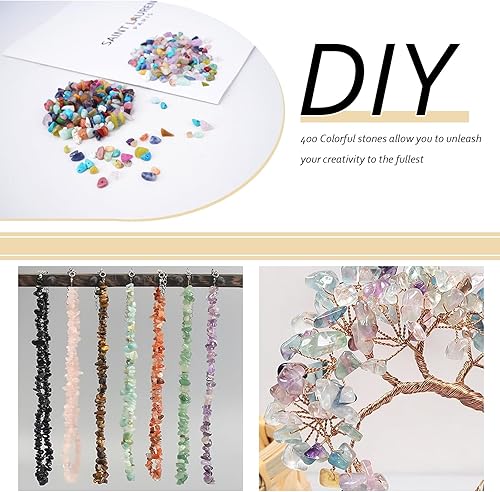 Zythrem 400 Pièces Perles à Enfiler Cristaux Pierres Précieuses Perles, Irrégulières Fluorite Pierres Précieuses avec Trou Naturel Perles pour Bijoux DIY Noël(5-8mm)