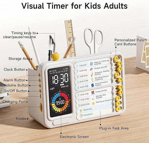 Qerwsdty Minuteur Visuel pour Enfants et Adultes, Minuterie TDAH avec Tableau Planification pour Horaires, Minuterie de Tâches, Minuterie Visuelle pour Tout-Petits, Minuterie Silencieuse