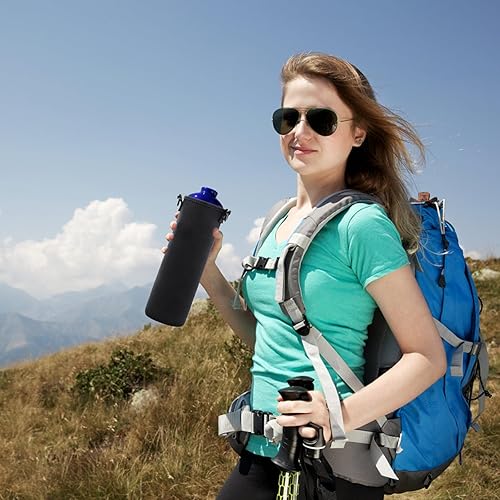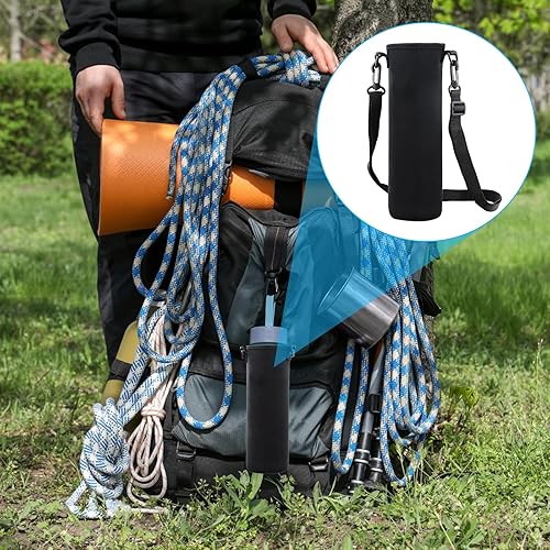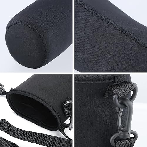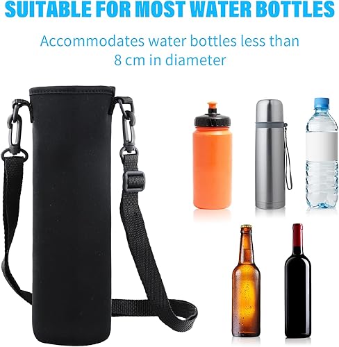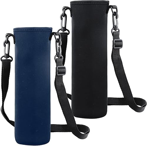 Shengxi 2 Pièces Sac de Bouteille d'eau, 8 × 25 cm Grand Porte-Bouteille Thermos Pochette Bouteille avec Bandoulière Réglable pour Sport Randonnée Cyclisme Voyages Campus (Noir+Bleu)