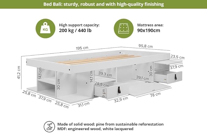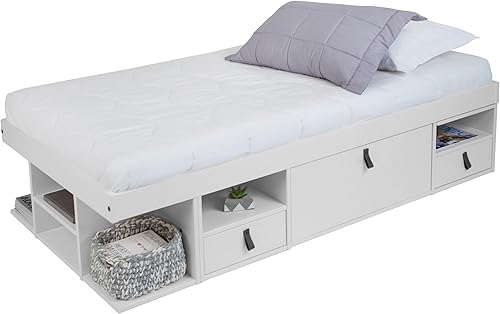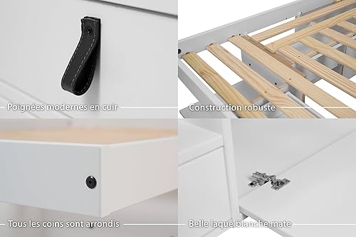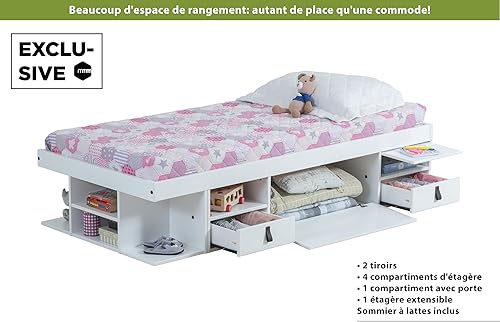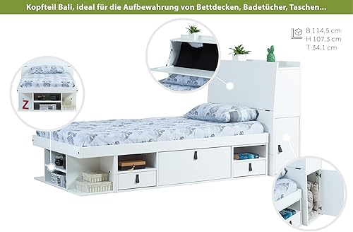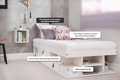 Memomad Lit Multifonction Bali 90x190cm Single Blanc - Beaucoup d’Espace de Rangement et tiroirs, idéal pour Petites Chambres - Lit avec Rangement en MDF laqué – Prix avec sommier à Lattes