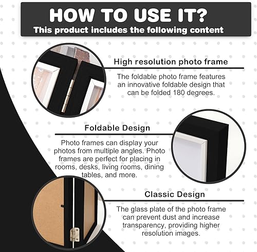 Cadre photo pliable pour 4 photos : 4 cadres photo 10 x 15 cm avec charnière Cadre photo collage avec vitre en verre Cadre photo remplissable Cadre d'art rabattable pour cadre d'art Cadre à