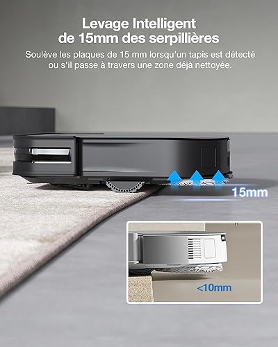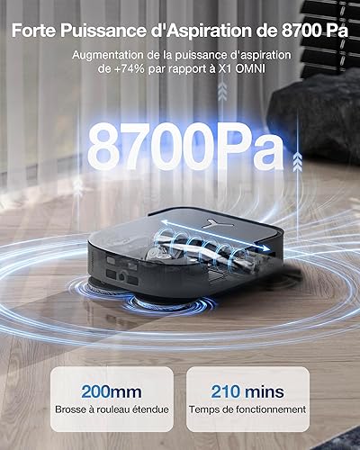 ECOVACS X2 Combo Robot Aspirateur Laveur, 8700Pa Aspirateur Robot avec Aspirateur à Main, Vidage Automatique Double, Levage des Patins de 15mm, Lavage à l'eau Chaude des Patins, Nettoyage Automatique