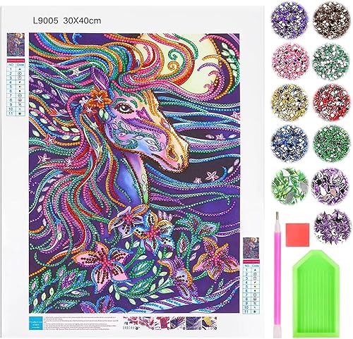 TZQFROCE Peinture diamant 5D - Chevaux - Cadeau pour filles de 8, 9, 10, 11, 12 ans - Licorne - 30 x 40 cm - Kit de peinture diamant pour enfants et adultes