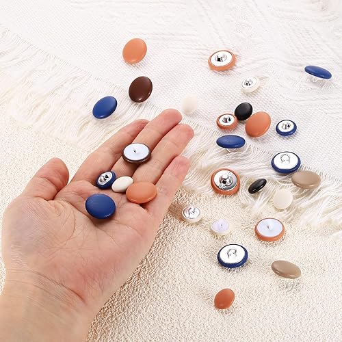sourcing map Lot de 10 boutons recouverts de cuir synthétique avec tige ronde en métal pour décoration de vêtements, accessoires de bricolage, 18 mm de diamètre, marron clair