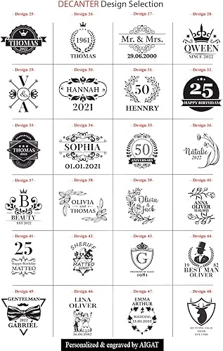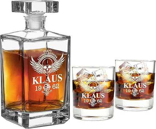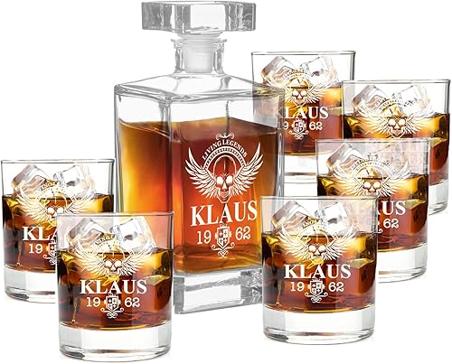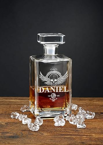 Carafe à Whisky Personnalisée avec 4 verres à Whisky, Cadeau pour Lui, Pendaison de crémaillère, Garçon d'honneur, Cadeau de mariage personnalisé, Taille 700ml