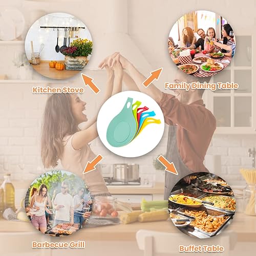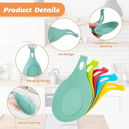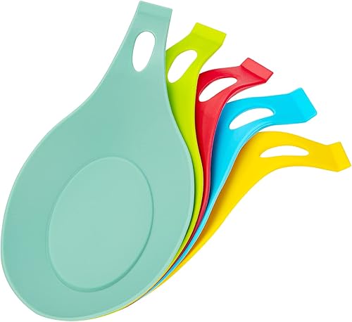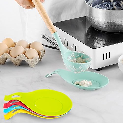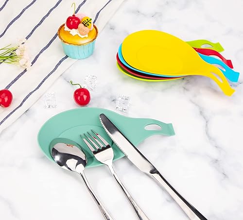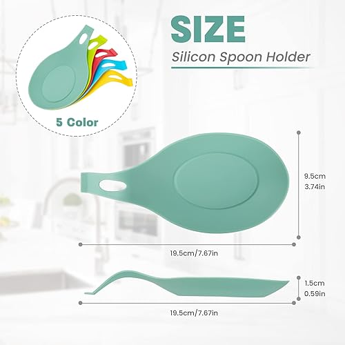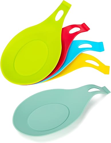 Repose-cuillère en Silicone Porte Cuillère de Cuisine Résistante à la Chaleur Flexible en Forme D'amande Porte Cuillère Cuisinière pour Cuillères, Ustensiles Cuisine 5 Pièces (5 Couleurs)