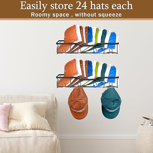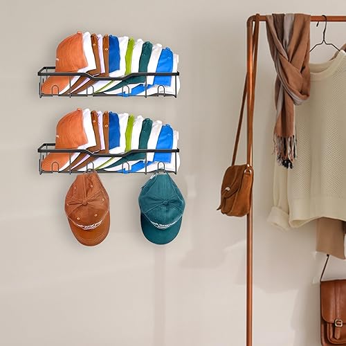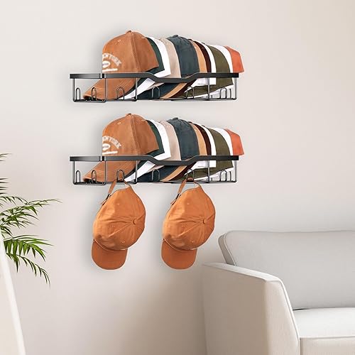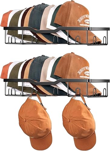ZoeQide Porte Casquette Mural en Métal – Lot de 2 Supports Muraux pour 20 Casquettes – Rangement Casquettes Mur, Organisateur de Chapeaux et Snapbacks – Étagère Murale en Métal Noir