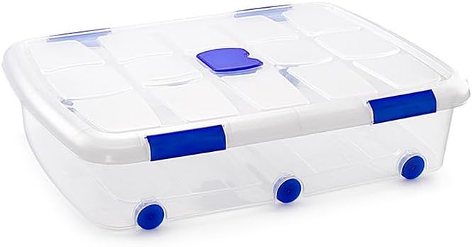 DRW Boîte de rangement sous lit en PVC transparent avec couvercle et roulettes et anti-mites de 56 litres 60 x 80 x 18 cm