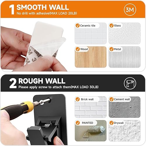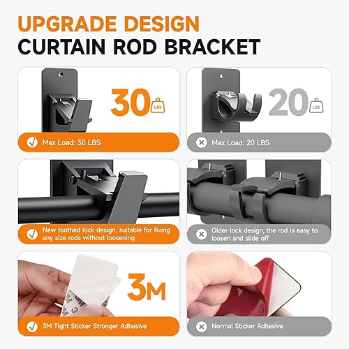 BelleVive 2 pièces Supports de Tringle à Rideaux, Supports Auto-adhésifs, sans perçage, Crochets pour Tringle à Rideaux, pour Salle de Bains, Noir