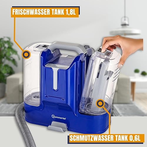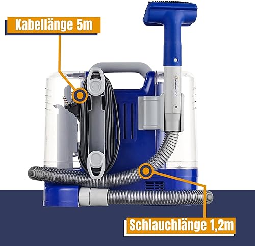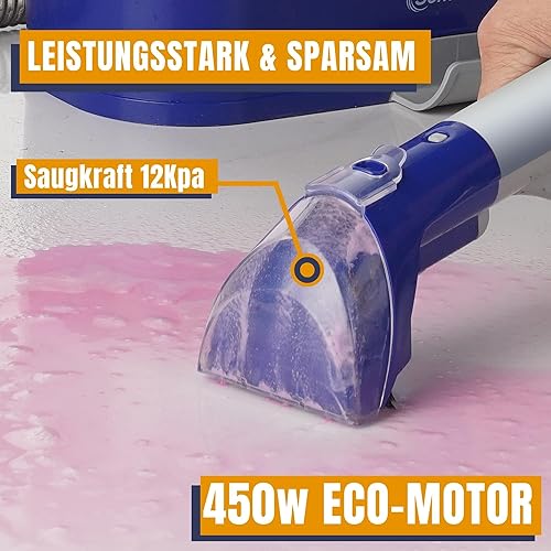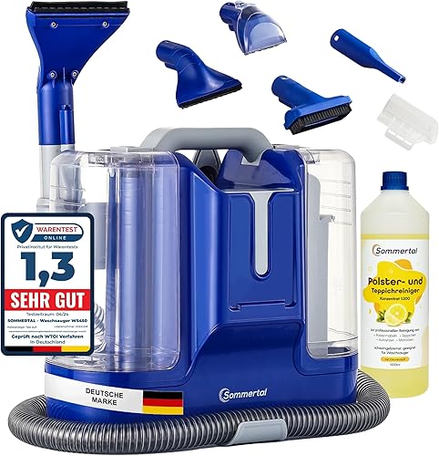 SOMMERTAL MultiCleaner WS450 5 en 1 + 1 l Nettoyeur de tissus d'ameublement, appareil pour tapis, escaliers, coussins, canapé, voiture, animaux, taches, moteur puissant de 450 W, aspirateur, avec