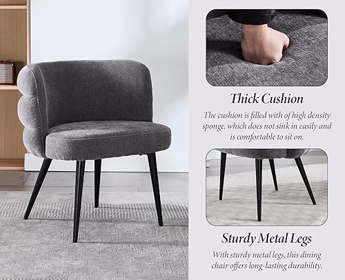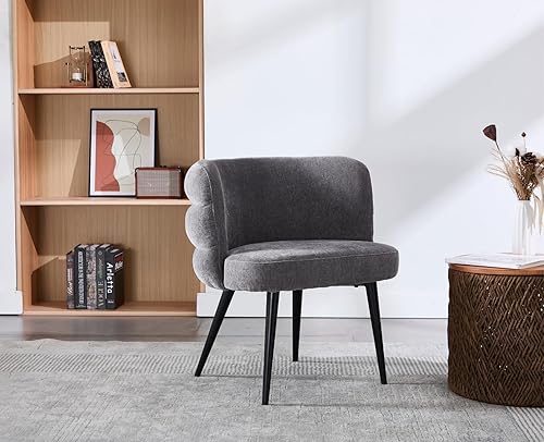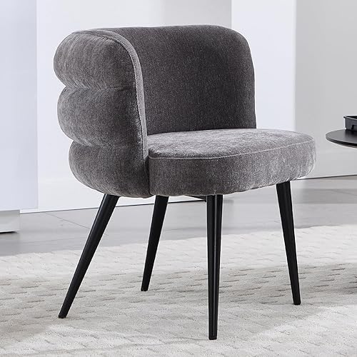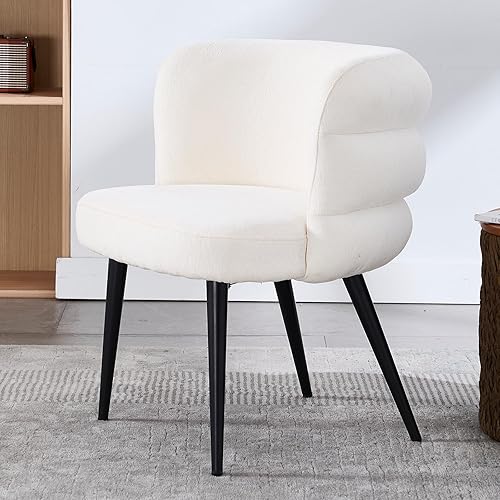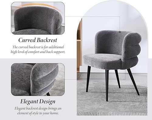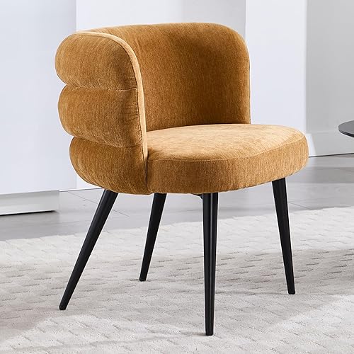 Ya-Home Fauteuil de Salon Moderne en Chenille Fauteuil Chambre avec Dossier Incurvé, Pieds en Métal, Lot de 1 Fauteuil Relax pour Chambre/Salon, Beige