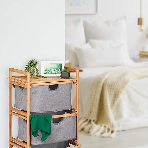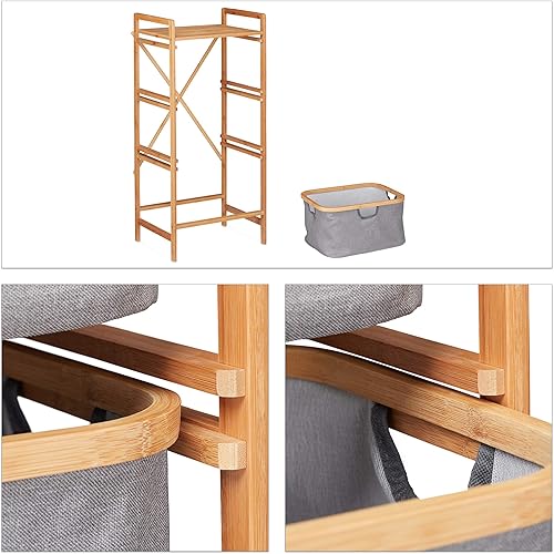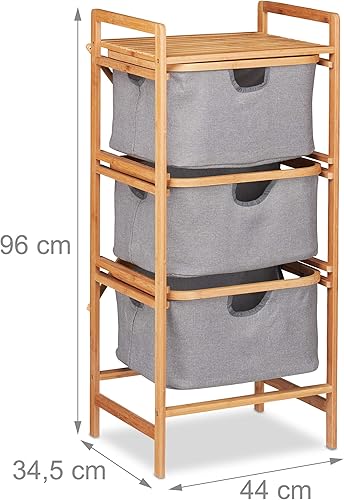 Relaxdays Gris trieur pour Linge en Bambou, 3 corbeilles, Salle de Bain et Chambre, étagère, 96 x 44 x 34,5 cm, Naturel