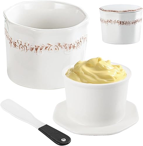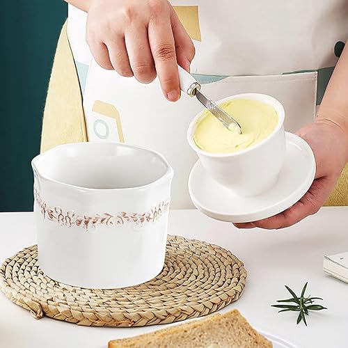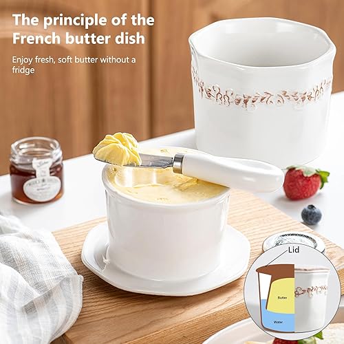 Beurrier français en céramique avec couvercle, cloche à beurre français en porcelaine avec couteau en céramique, beurrier en céramique pour beurre tartinable