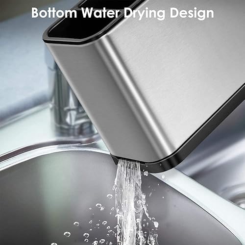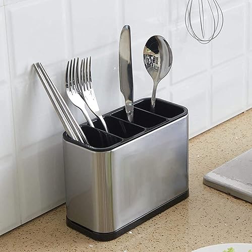Sertay Porte Ustensiles Organiseurs, Égouttoir à Couverts, Porte-Ustensiles De Cuisine, Porte-Ustensiles De Cuisine En Acier Inoxydable, pour Cuillère à Soupe, Cuillère, Fourchette, Couteau (Carré)