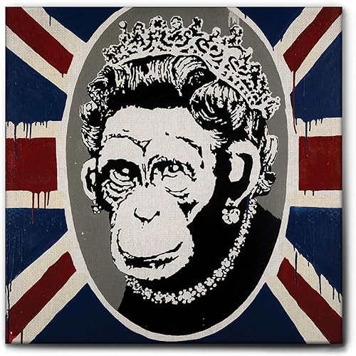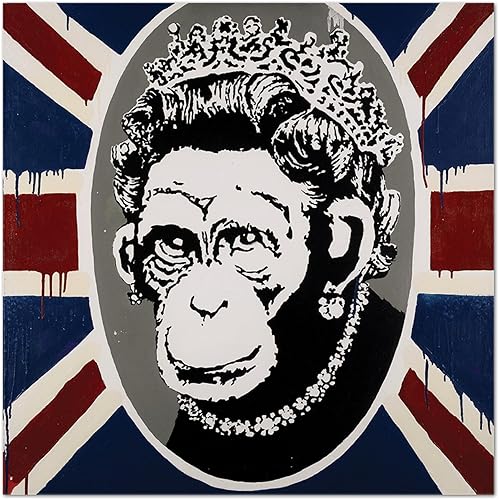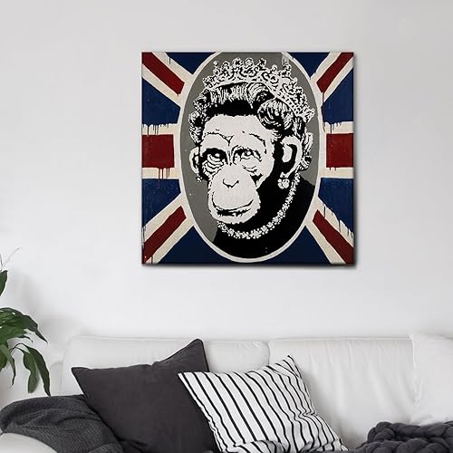 Giallobus - Impression sur toile - Banksy - Reine des singes 2 - Toile à cadre standard - 50x50 - Prêt à accrocher - Peintures pour la maison