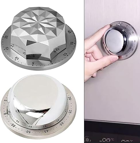 Minuteur mécanique de cuisine avec aimant puissant en acier inoxydable et fort 70 dB (en forme de chapeau)