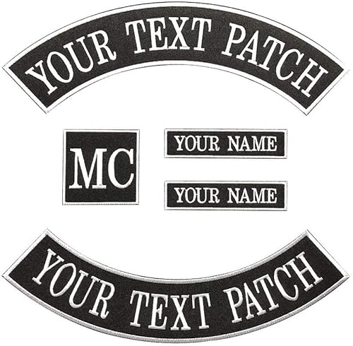 Patch personnalisé de veste de motard, patch personnalisé de nom de bascule de texte pour le club, moto, vêtements de vestes de sacs (White on Black with White Border)