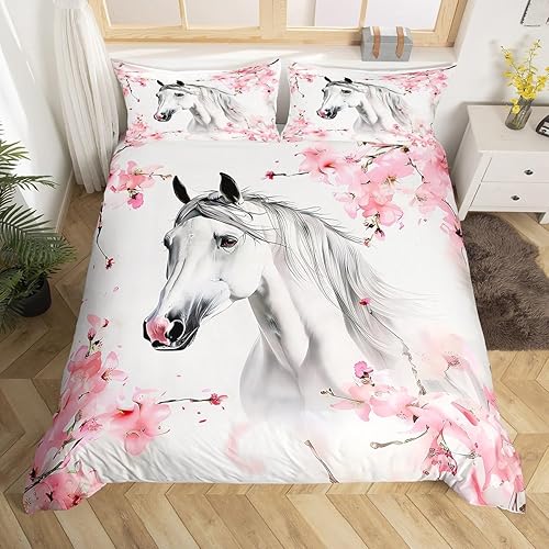 RZPFQB Cheval Blanc Housse de Couette pour Chambre d'enfant 1 Personne 90 x 190 cm Chevaux Parure de Lit en Microfibre pour Enfant GarçOn Fille Ado 3D Wildlife Animal Ensemble