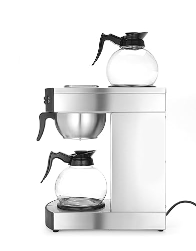 HENDI Cafetière filtre, électrique, café moulu pour filtre, incl. 100 filtres à café en papier et 2 verseuses en verre de 1,8L, machine à café filtre, 230V, 1400W, 383x220x(H) 465mm, acier inoxydable