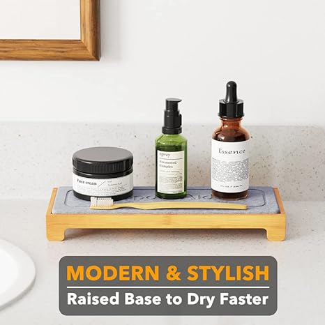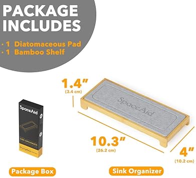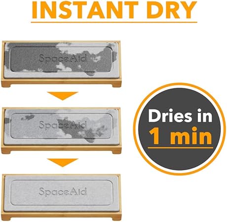 SpaceAid DryingNeat Organiseur d'évier à séchage instantané - Distributeur de savon pour éponge de cuisine - Séchage rapide - Bambou, gris
