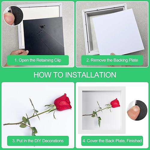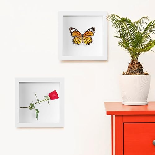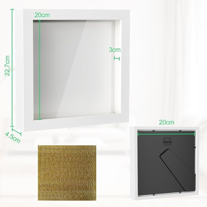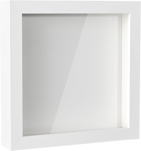 Rseuphiee Cadre 3D Profond, 20x20 cm Photo 3D à Remplir, Profondeur 3 cm, Cadre Photo en Bois, Blanc Cadre Carré, Cadre Profond avec Vitre, pour Objet pour Photos, Ouvrages d'art Souvenirs