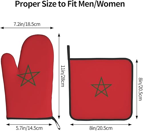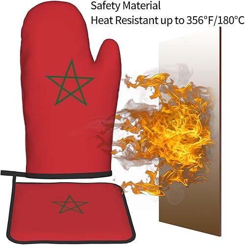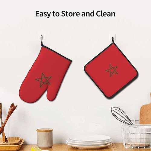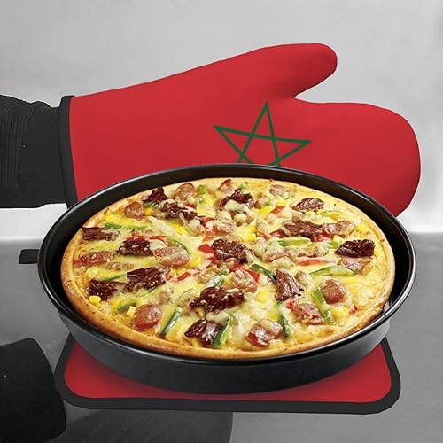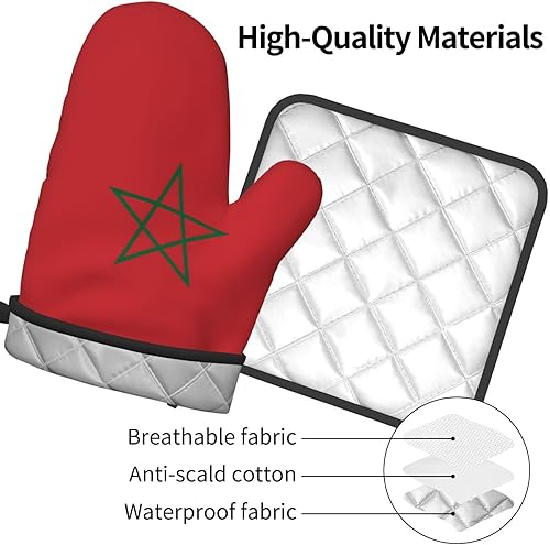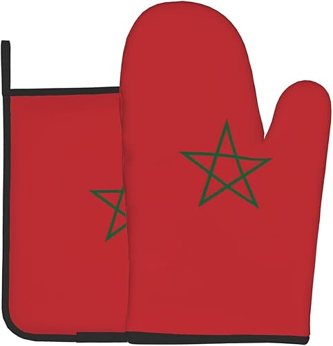 LLKGOT Ensemble de gants de cuisine et maniques avec motif drapeau du Maroc pour ouvrir le couvercle de la casserole dans la cuisine, micro-ondes, four