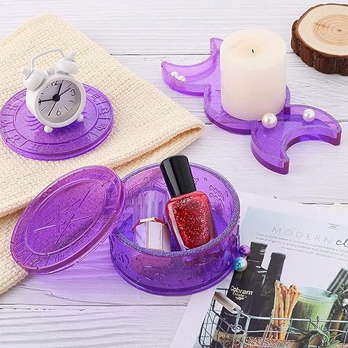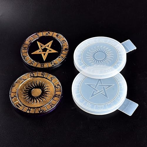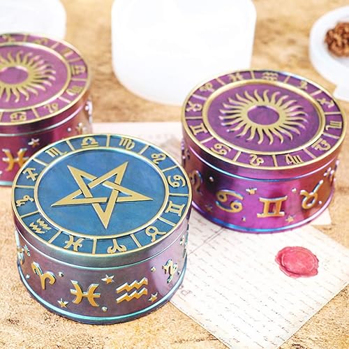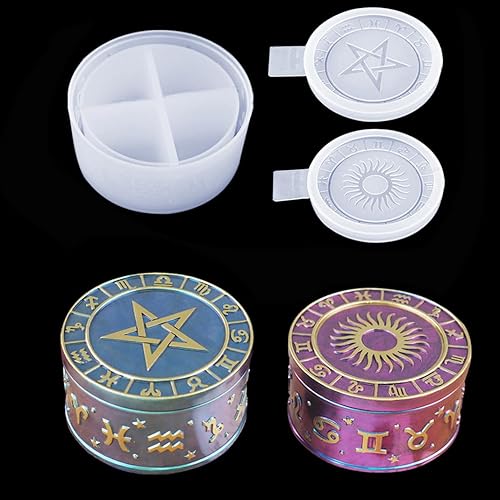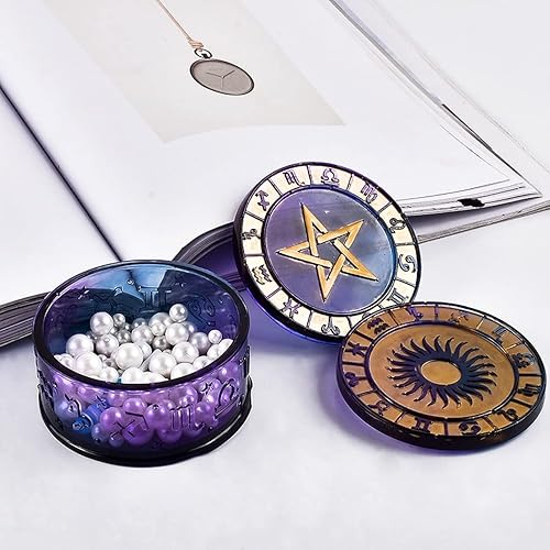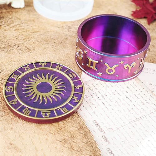 DIYBravo Moules en Résine de Boîte avec 2 Moules de Couvercles Silicone, Moules de Ronds avec 12 Symboles de Constellation de Rangement Moulle Silicone Resine Epoxy (Moules avec 2 Couvercles)