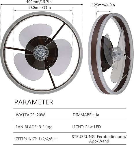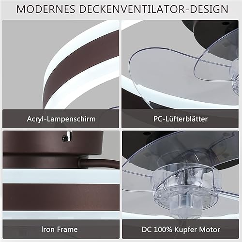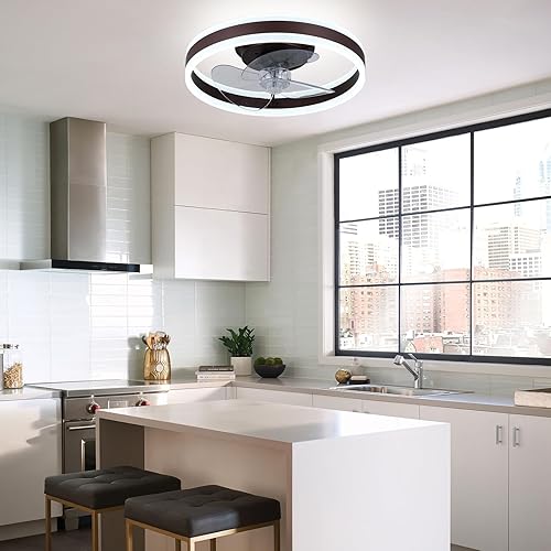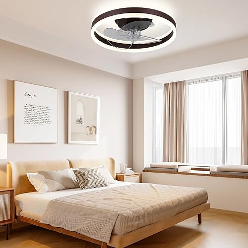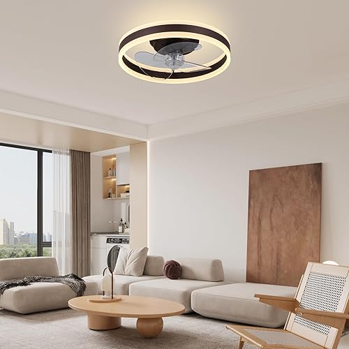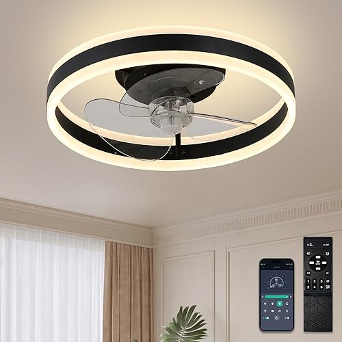 Ventilateur de plafond encastré de 16 pouces avec télécommande, profil bas, réversible, silencieux, gradable, ventilateur de plafond de lustre blanc pour chambre à coucher (noir)