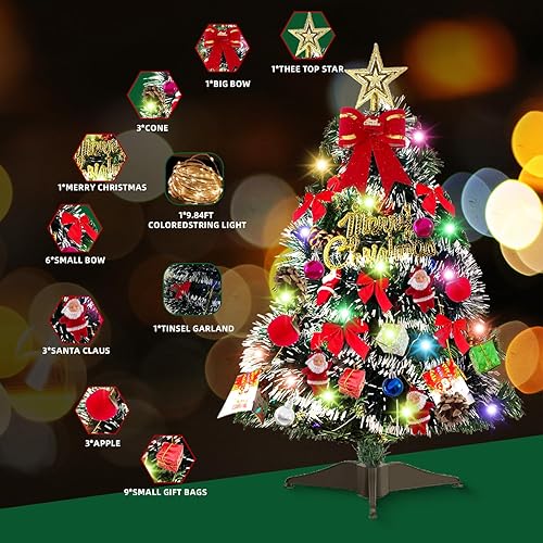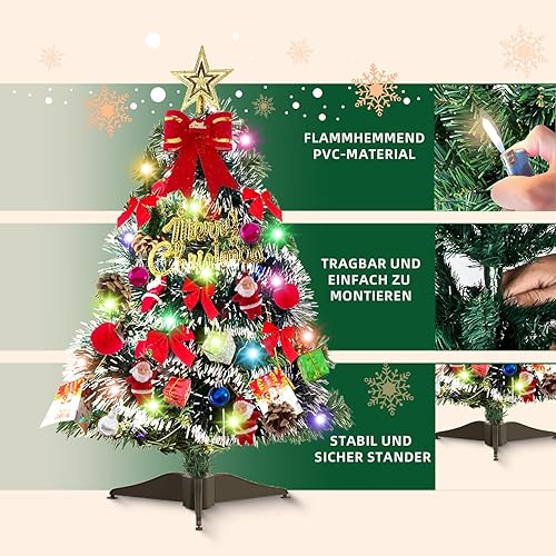 Sapin de Noël Artificiel 60 cm - Mini Arbre Avec Ornements pour Table, Bureau, Accueil - Décoration pour Fête de Noël