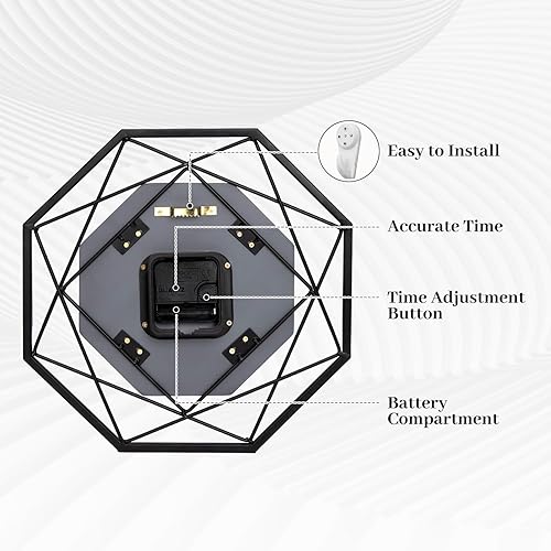 VINILITE Grande Horloge Murale Métal Design Vintage avec Movement à Quartz Silencieux et sans Tic-Tac Pendule Murale pour Salon, Cuisine, Bureau, Chambre
