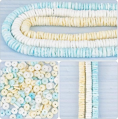 NBEADS 504 Pcs 3 Couleurs Perles de Coquillage Blanc Naturel, Perles de Coquillage de Mer Plates Rondes/Disques en Vrac Perles de Coquillages Puka pour Collier Collier Fabrication de Bijoux