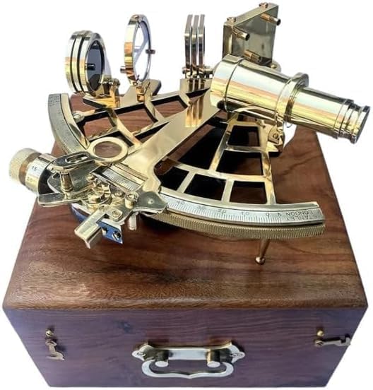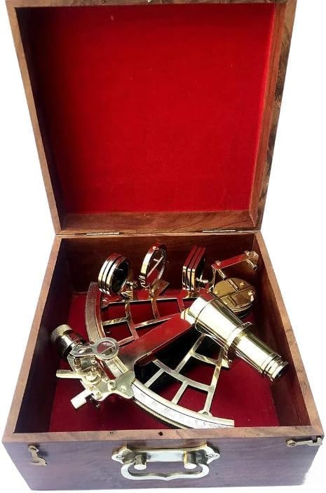 Instrument de sextant en laiton avec boîte en bois - 22,9 cm - Navire de navigation complet Astrolabe Sextant