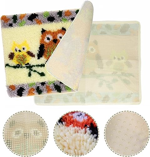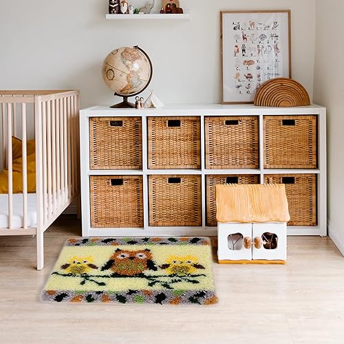 Kits de Tapis de Crochet de Bricolage,adulte et enfants DIY Tapis Broderie Kit,Chouette Tapis Crochet pour salon/chambre d'enfants(Famille de chouettes)